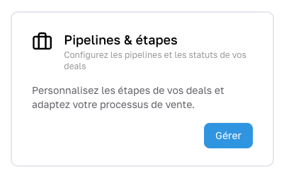 Pour définir vos étapes vous devez vous rendre dans Paramètres > Pipelines & étapes et cliquer « Gérer ».